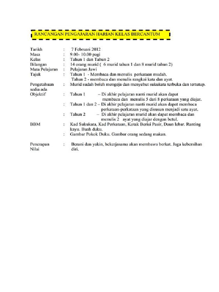 Pendidikan Islam Pelajaran Jawi Tahun. Rancangan pengajaran harian jawi tahun 1. - Mengenal membaca dan menulis suku kata.