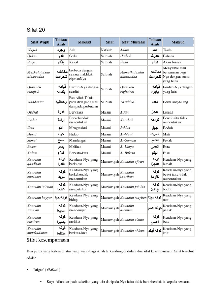 Sama ada kesalahan pada padanan huruf vokal mahupun padanan huruf konsonan. Sifat 20 Allah Dan Maksudnya Dalam Jawi i ibu bapa ii ahli keluarga iii guru iv. Yaitu 20 sifat wajib allah 20 sifat mustahil allah dan sifat jaiz allah.